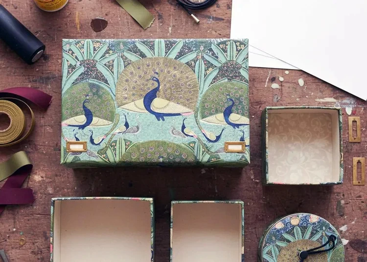 “Có thể lót bên trong hộp bằng giấy cứng màu trung tính hoặc một trang lịch khác để tạo sự tương phản, cân bằng màu sắc và giúp mở hộp trông tinh tế, sang trọng. Thêm các chi tiết có cảm giác chạm như tay cầm dây da, dây ruy băng grosgrain, nút vintage hoặc bảng tên đồng nhỏ” – Gupta chia sẻ.