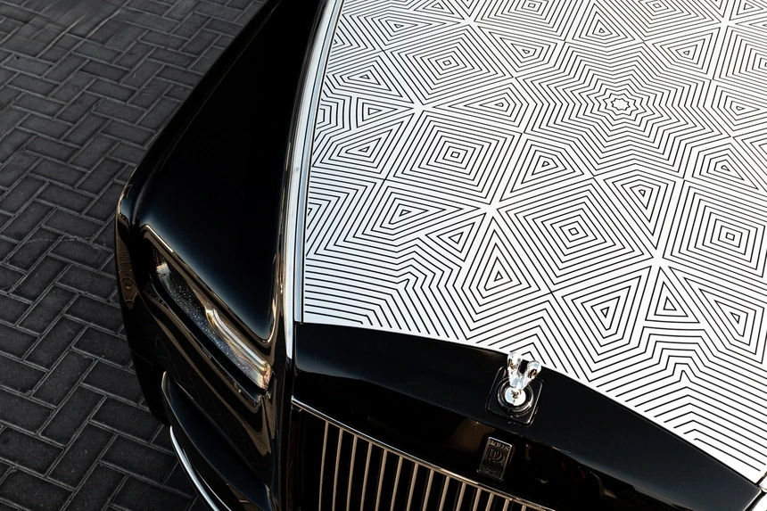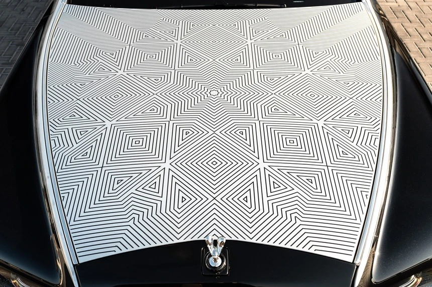Mẫu xe siêu sang Rolls-Royce Phantom Arabesque độc nhất thế giới sở hữu nắp capo được khắc laser với họa tiết Mashrabiya đặc trưng của Trung Đông.