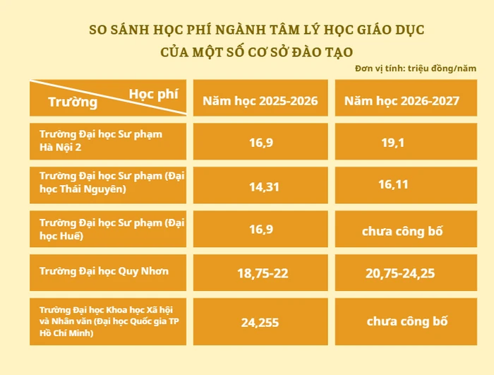 Hiện nay, một số trường đại học đào tạo ngành Tâm lý học giáo dục đã công bố các phương thức tuyển sinh, học phí dự kiến năm 2026.