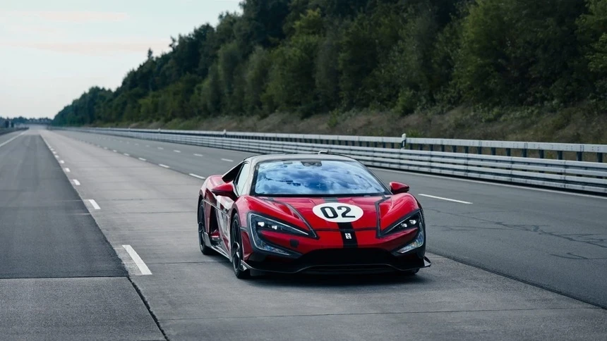Mẫu ôtô điện đến từ BYD đã gây chấn động khi đạt tốc độ 496 km/h tại Đức vào tháng 9/2025. Sở hữu 4 motor điện với tổng công suất gần 3.000 mã lực, đây hiện là mẫu xe thương mại nhanh nhất thế giới từng được thử nghiệm thực tế. Ảnh: Graeme Fordham.