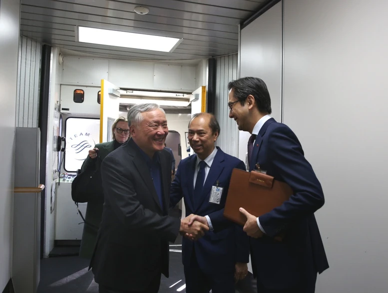 Đón Phó Thủ tướng Thường trực Chính phủ Nguyễn Hòa Bình và đoàn tại Sân bay có Đại sứ Việt Nam tại Hoa Kỳ Nguyễn Quốc Dũng và Đại sứ, Trưởng Phái đoàn Thường trực Việt Nam tại Liên Hợp Quốc Đỗ Hùng Việt.